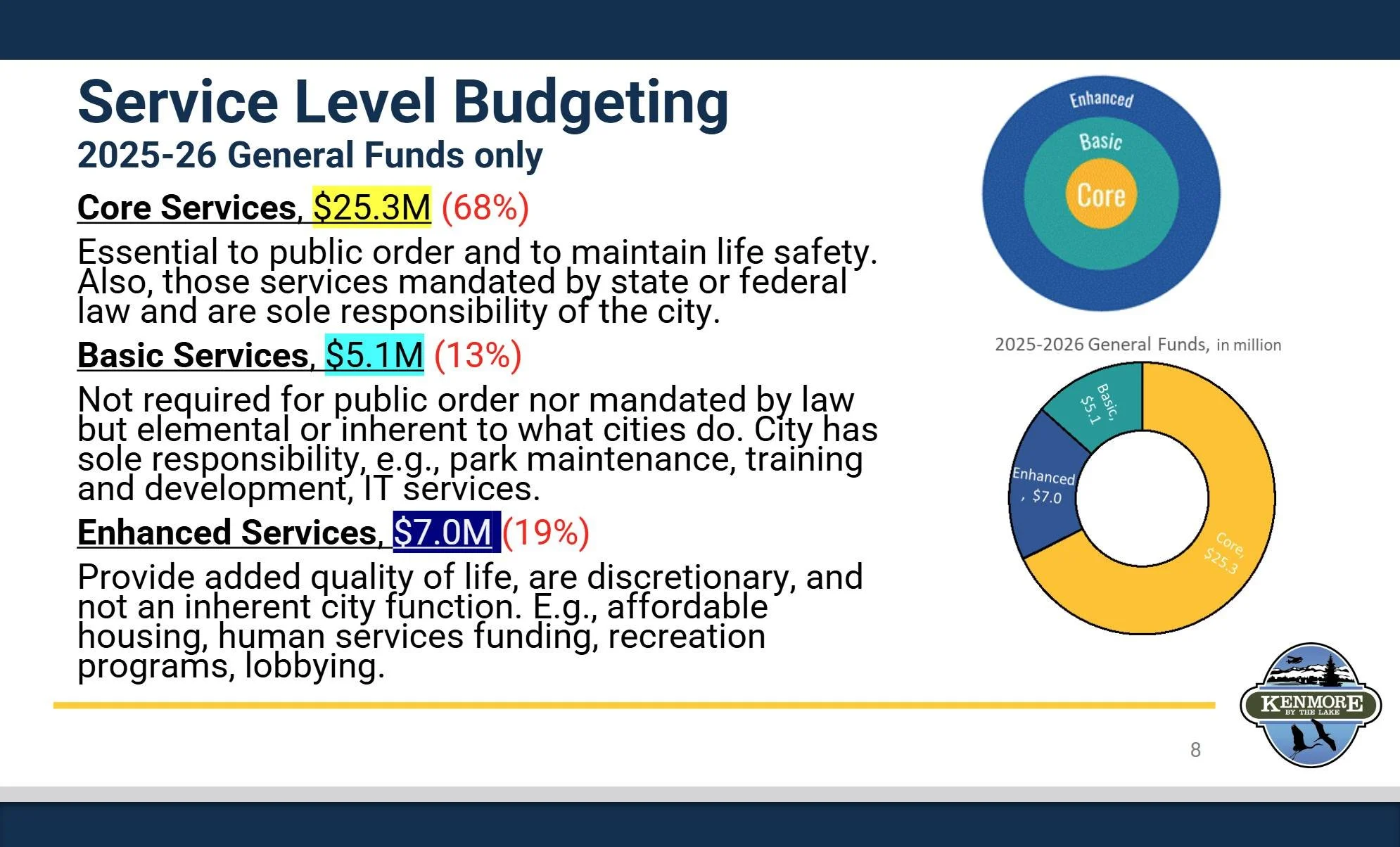 The City Manager and department heads then started their overviews. The presentation can be found here: https://kenmorewa.portal.civicclerk.com/.../attachment/456 A few notable things: